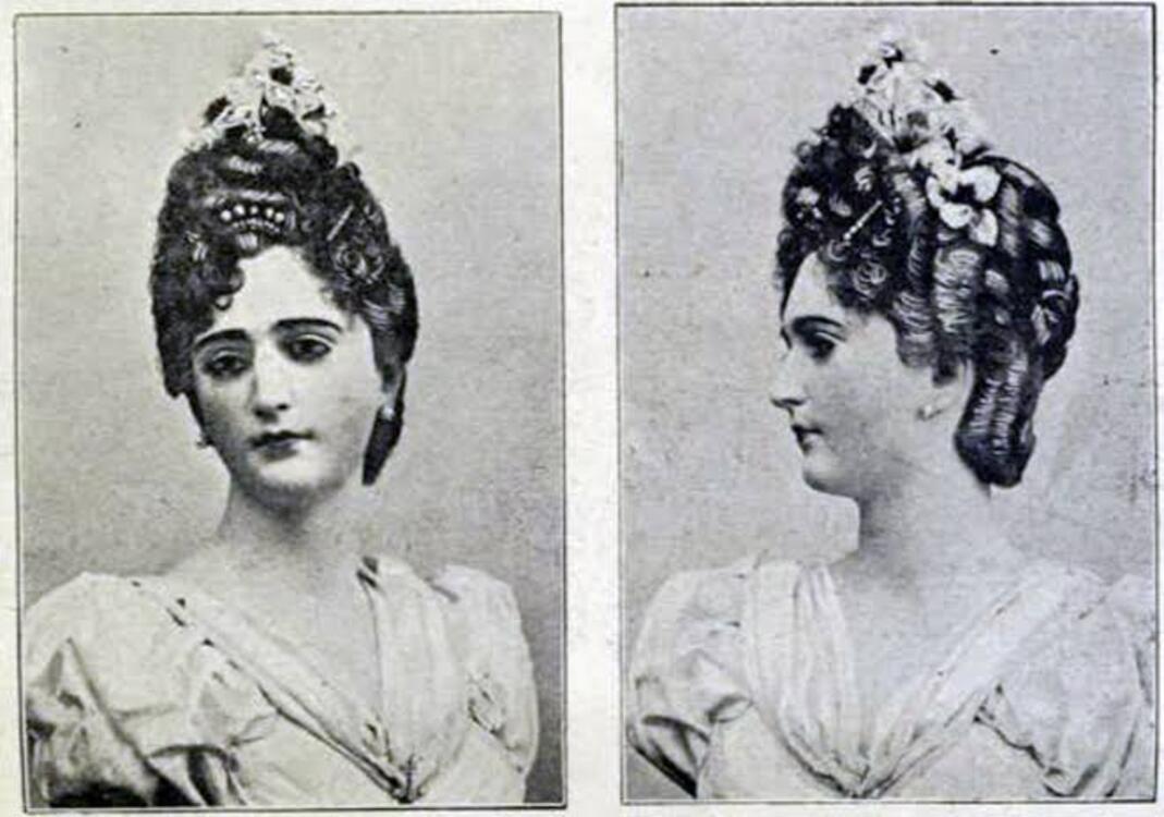 Речь идет об «экономных» коротких прическах с легкими завитками, косым или прямым пробором и ровной челкой. Такая прическа получила название «а ля гарсон» или в переводе с французского «как мальчик». Для ее создания не нужно было много времени или больших затрат. Для вечерних выходов добавляли больше кудрей. На торжественные выходы мещанки украшали прически диадемами, черепаховыми гребешками и обручами.