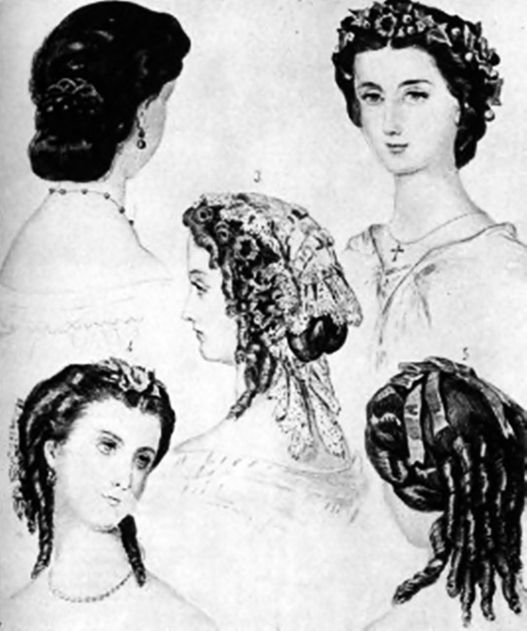 Женщины учились плести различные косы и выкладывать их на голове, иногда это были настоящие композиции. А кто-то носил просто пучок из кос или гульку. Женщины просыпались рано, потому что процесс изготовления ежедневной прически занимал около часа. В более ранние периоды не принято было появляться перед публикой с распущенными волосами. Хотя со временем это правило и потеряло актуальность, многие женщины продолжали собирать волосы.