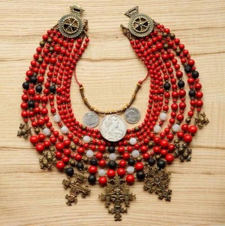 Одно из самых любимых гуцулами украшений. Гуцулки могли носить на своей хрупкой шее 40-50 разков ожерелья, которые вместе весили несколько килограммов. Выйти без ожерелья с голой шеей для гуцулок было то же самое, что выйти голой. Особенно любили красные кораллы, ведь верили, что они оберегают от волшебства и злых сил. У гуцулов считалось плохой приметой потерять или разорвать ожерелье. Кроме того, эти украшения были дорогими. Поэтому гуцулки носили их очень бережно и передавали по наследству.