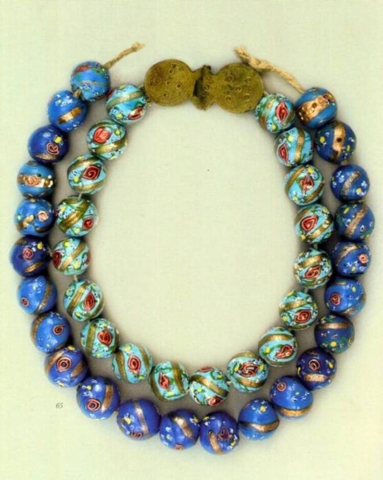 Очень интересная разновидность бус. Его делают из смальты — непрозрачного цветного стекла самых разнообразных цветов: темно-синего, бирюзового, голубого, зеленого, коричневого, красного или белого. Круглые бусинки разрисовывались различными красками и даже инкрустировались золотом или стеклом. На бусинках красовались разнообразные растительные мотивы: завитки, листочки, веточки и тому подобное. Дешевым вариантом было ожерелье белых оттенков — «жемчуг». Оно было очень популярным, гуцулки носили много во много слоев. Оно было недорогим и одновременно очень эффектным.