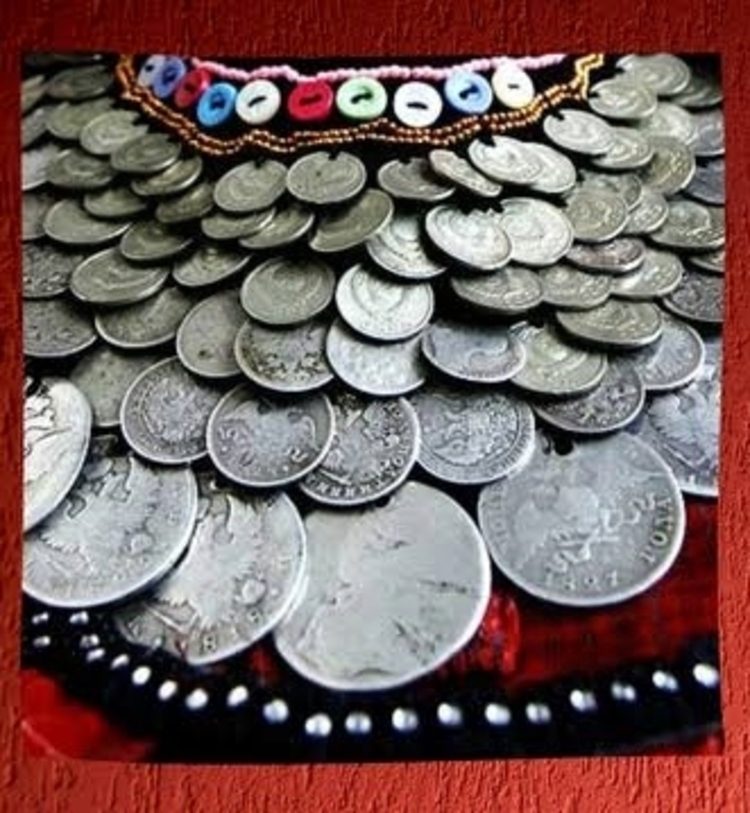 Своеобразный нагрудник из ткани, к которому пришивали монеты. На 3-4 рядах сверкало немало австро-венгерских, польских, российских, румынских и итальянских монет. Сегодня салбы встречаются очень редко.
