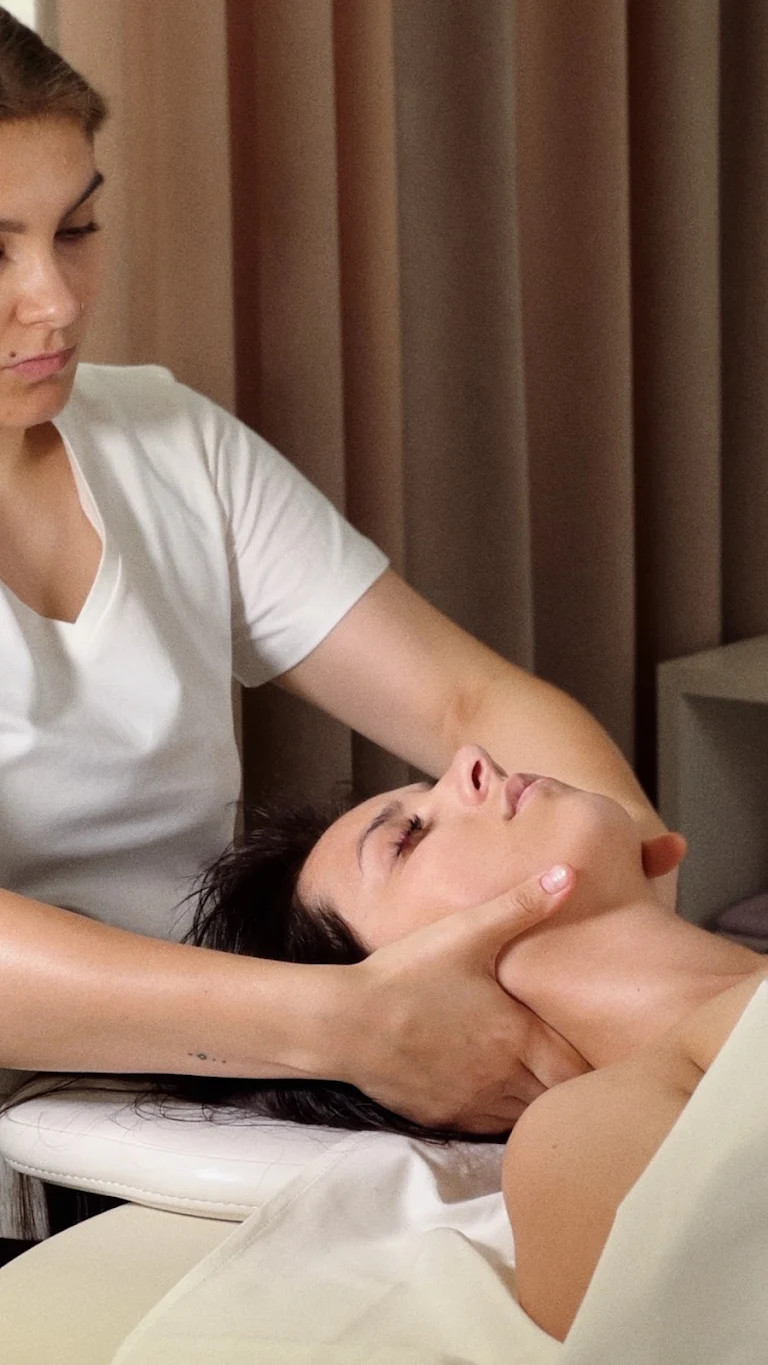 • Массаж «Снятие социальных масок». Наше лицо и шея — это карта наших эмоций. Этот массаж направлен на расслабление мимических мышц, где накапливается напряжение от сдерживаемых слез, невысказанного гнева или постоянной «вежливой» улыбки. Глубинная проработка этих зон освобождает подавленные эмоции и дарит удивительное ощущение легкости.
