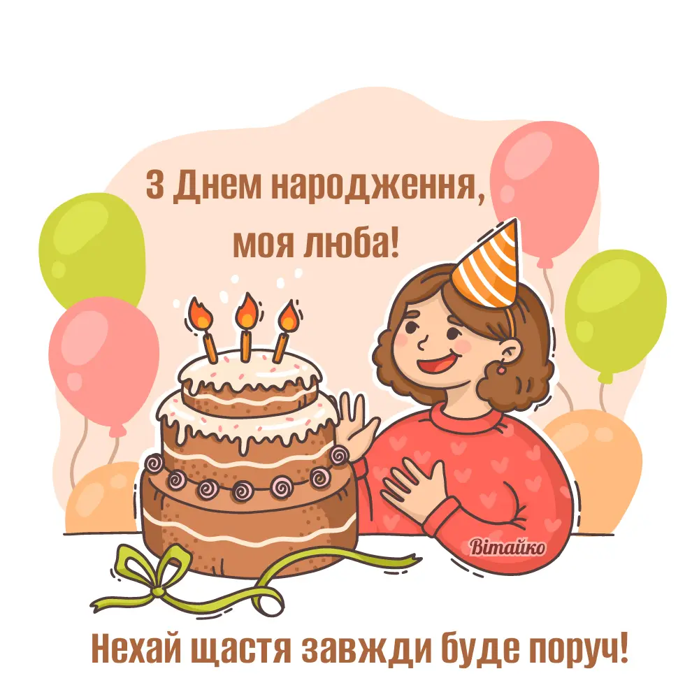 - З днем народження! 🎉 Бажаю щастя неземного, любові, успіху та купу грошей! Ти найкраща!