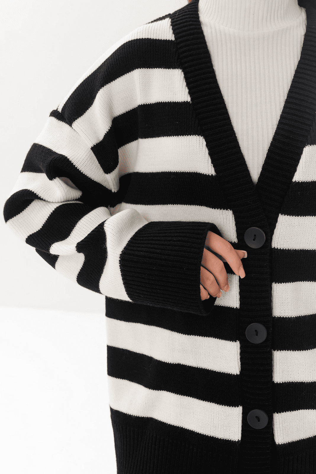 - Кардигани. Традиційно така модель застібається на ґудзики та має вільний крій. Кардигани підійдуть для багатошарових образів та стануть вдалим стильним акцентом для осіннього або весняного гардероба.